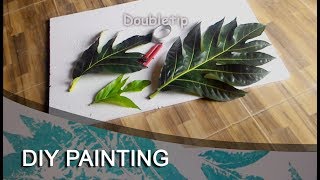 DIY Home decor - Paint leaf pattern - Cat dinding motif daun.