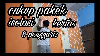 tutorial mengecat dinding kamar dengan motif geometric bahan: 1.cat warna oranye,hitam,abu-abu, 2.plester kertas 3.kuas ...